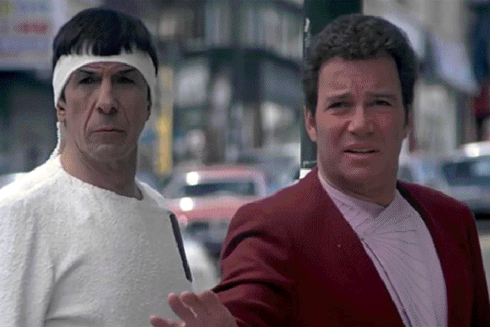 In this film, a mysterious ship begins orbiting Earth and destroys the planet's power grid. It emits strange noises, too, and the newly resurrected Spock realizes the sound is similar to the now-extinct humpback whale. Believing the strange ship is expecting to hear back the song of humpback whales, the crew goes around the Sun and travels back in time to 1986 to get a humpback whale.