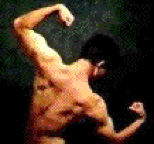 deltoid muscles large. The abdominal muscles are prominent and thick.